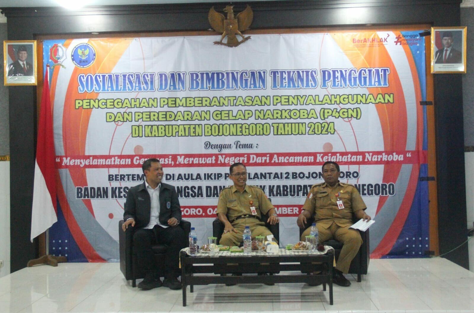 Bojonegoro – Dalam upaya menekan peredaran narkoba, Pemerintah Kabupaten Bojonegoro melalui Badan Kesatuan Bangsa dan Politik (Bakesbangpol) menggelar sosialisasi dan bimbingan teknis Pencegahan, Pemberantasan, Penyalahgunaan, dan Peredaran Gelap Narkoba (P4GN) pada Senin (4/11/2024). Bertema “Menyelamatkan Generasi, Merawat Negeri dari Ancaman Kejahatan Narkoba,” acara ini dilaksanakan di Aula IKIP PGRI Bojonegoro.