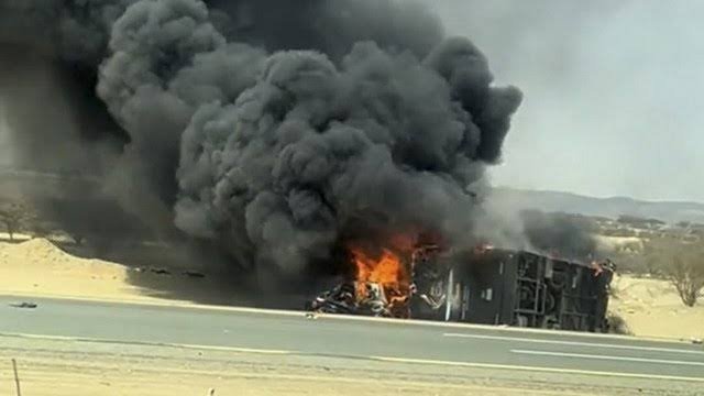 Bus yang mengangkut para jemaah dilaporkan mengalami tabrakan dengan truk, terbalik, dan terbakar. Akibatnya, enam jemaah meninggal dunia, sementara total korban dalam insiden ini mencapai 20 orang.