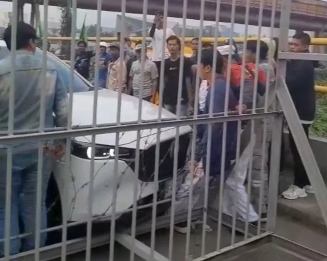 Sekitar pukul 11.00 WIB, suasana memanas ketika mobil Mazda berpelat B 2822 NFA milik Ricki Hikmatullah tiba di lokasi. Alih-alih berhenti dan berdialog, Ricki justru diduga memaksa masuk ke dalam kawasan pabrik. Ia melajukan mobilnya pelan namun terus menekan hingga menabrak seorang buruh yang berdiri di depan mobil. Korban sempat terjepit dan berteriak kesakitan, sebelum akhirnya dievakuasi oleh sesama buruh.