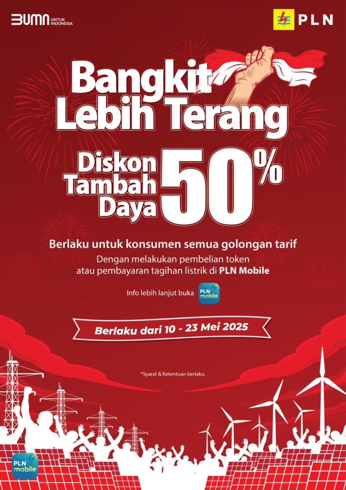 Promo diskon 50% ini adalah kesempatan yang sangat baik untuk mendapatkan daya listrik tambahan dengan biaya yang lebih terjangkau. Pelanggan diharapkan untuk segera memanfaatkan promo ini sebelum 23 Mei 2025, mengingat waktu yang terbatas. Jangan lewatkan kesempatan ini untuk menambah daya listrik dengan harga yang lebih hemat dan efisien.