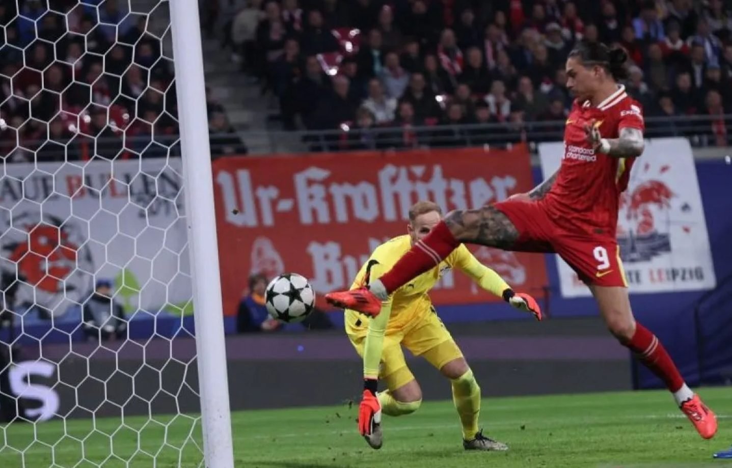 Dari awal pertandingan, tuan rumah RB Leipzig tampil agresif, mendominasi 20 menit pertama dengan serangan yang tajam. Namun, Liverpool tampil lebih taktis dan berhati-hati. Di menit ke-27, tim tamu berhasil memecah kebuntuan melalui skema serangan dari sisi kiri. Mohamed Salah memberikan assist melalui sundulan yang disambar dengan baik oleh Nunez tepat di mulut gawang, membawa Liverpool unggul 1-0.