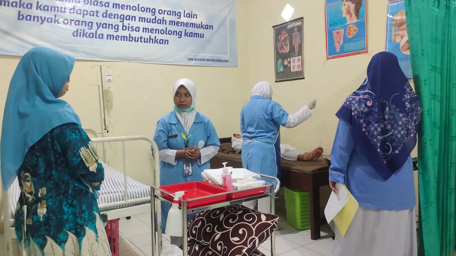 Jurnal Pelopor, Bojonegoro – SMK Kesehatan Bojonegoro menggelar Ujian Kompetensi Kejuruan (UKK) untuk program keahlian Asisten Keperawatan dengan melibatkan 12 siswa yang mengikuti ujian langsung di lingkungan sekolah. Ujian ini dilaksanakan bekerja sama dengan RSIM Sumberrejo sebagai mitra Dunia Usaha dan Dunia Industri (DUDI).