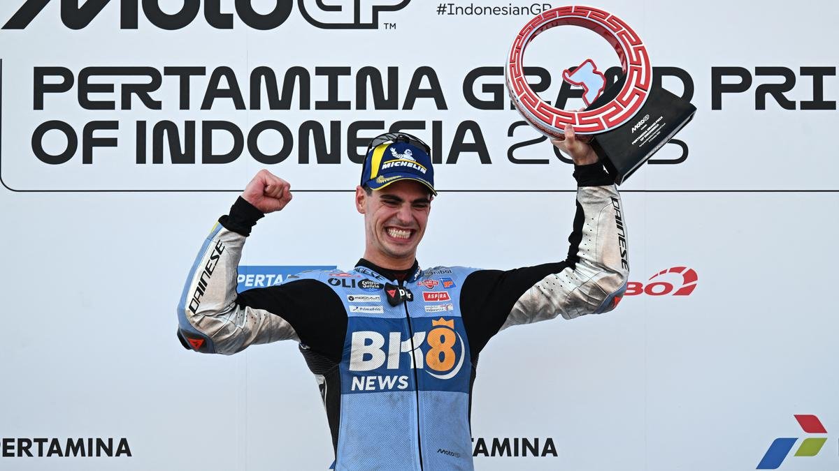 Kesempatan itu dimanfaatkan Aldeguer dengan baik. Rider asal Spanyol tersebut menyalip Acosta di lap kedelapan setelah lawannya melebar. Sejak saat itu, Aldeguer terus memperlebar jarak dan tampil tanpa tekanan berarti hingga menyentuh garis finis pertama dengan keunggulan hingga enam detik.