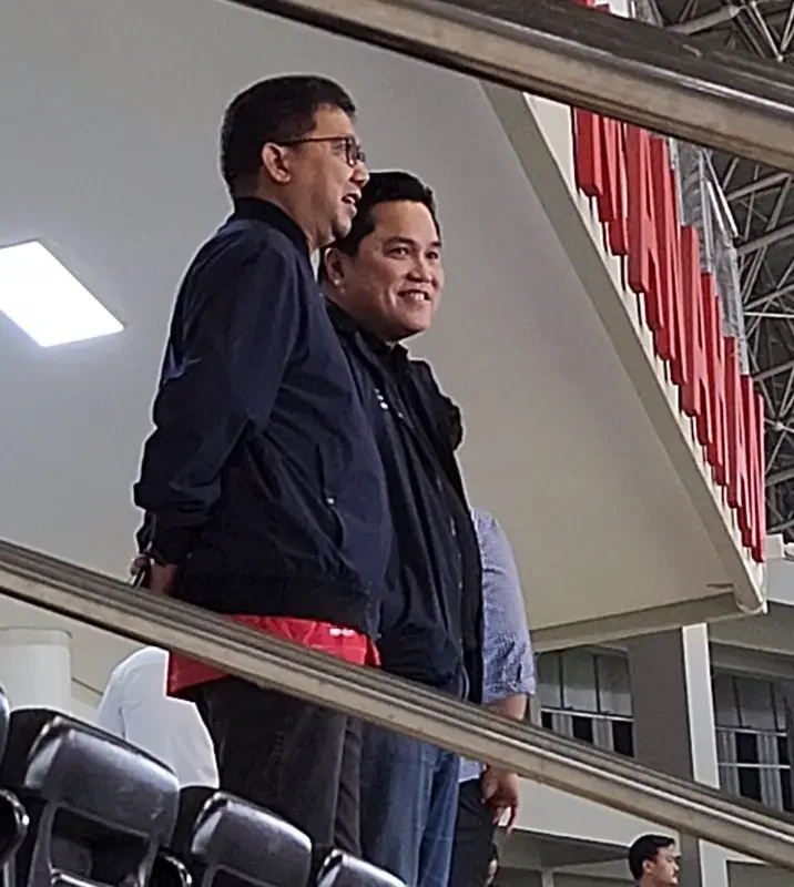Setibanya di area VVIP, Erick Thohir langsung menghampiri beberapa tamu, termasuk Tommy Welly yang tengah menyaksikan pertandingan. Momen yang paling mencuri perhatian adalah interaksi akrab antara Erick dan pengamat sepak bola Bung Towel. Erick tampak menepuk pundak Bung Towel, dan keduanya terlibat percakapan hangat yang penuh tawa, menciptakan suasana akrab di kursi VVIP.