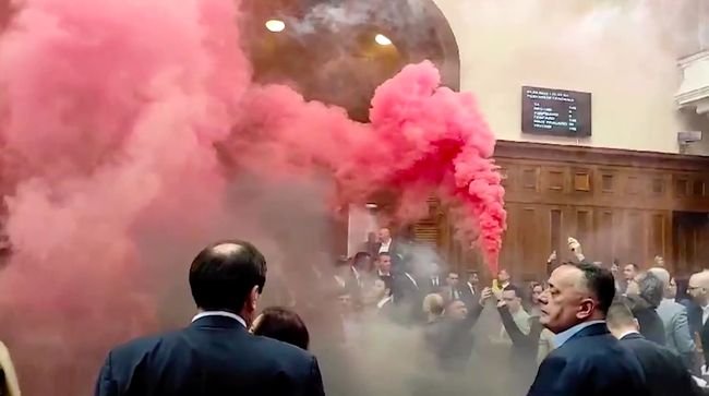 “Tidak mungkin ada parlemen dengan mereka yang mencuri dan melarikan diri. Hukum dan hanya hukum yang harus ditegakkan,” ujar Berisha di tengah kekacauan sidang.