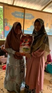 Kebersamaan semakin terasa saat sesi bagi-bagi hadiah berlangsung. Gelas, mangkuk, gula, mi instan, pisang, tumbler, hingga beras dibagikan kepada para peserta. Momen yang paling mengharukan adalah ketika Nek Yayah menerima hadiah khusus berupa satu sak beras 5 kg. Dengan semangat luar biasa, ia telah menyelesaikan khatam 30 juz Al-Qur’an di hari ke-9 Ramadhan. “Alhamdulillah, membaca Al-Qur’an itu membawa ketenangan. Semoga kita semua bisa terus istiqamah,” ucap Nek Yayah dengan mata berbinar.