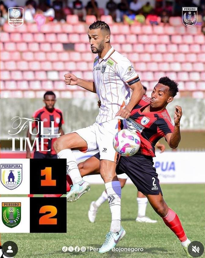 Jayapura, Laga sengit jual beli serangan terjadi antara Persipura Jaya Pura Vs Persibo Bojonegor dalam lanjutan LIGA 2 Penggadaian pecan kedua, yang di helat di Stadion Mandala Jayapura sabtu (21/09) kemarin pukul 13.30 WIB atau 15.30 WIT. Dalam pertandaingan tersebut kelauar sebagai pemenang persibo team tamu menang dengan sekor 1-2 atas tuan rumah Persipura Jayapura.