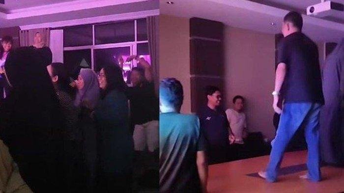 Tangkapan layar video viral yang memperlihatkan sejumlah orang tengah berjoget hingga naik ke meja. Foto: Tangkapan Layar Tribun Bekasi
