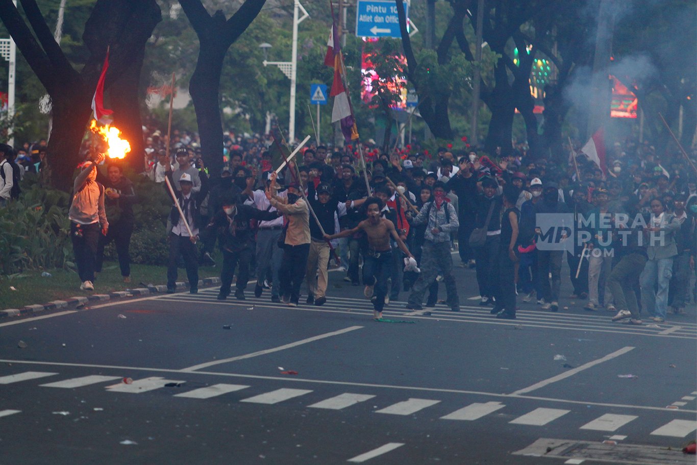 Ribuan massa demonstrasi di Senayan desak pembubaran DPR, aksi berakhir ricuh setelah bentrok dengan aparat kepolisian Jakarta.
