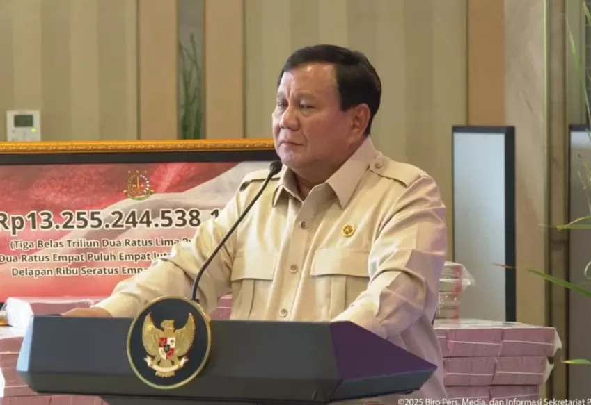 Pernyataan tegas itu disampaikan Prabowo saat menghadiri acara penyerahan uang sitaan senilai Rp13,2 triliun oleh Kejaksaan Agung (Kejagung) dalam kasus korupsi persetujuan ekspor minyak kelapa sawit (CPO) periode 2021–2022 di Gedung Utama Kejagung, Jakarta, Senin (20/10/2025).