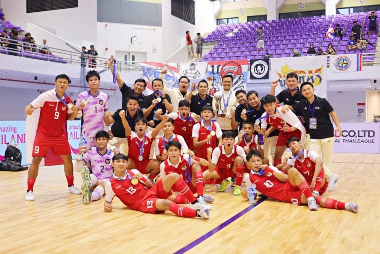 Jurnal Pelopor – Timnas Futsal Indonesia U-16 menorehkan prestasi gemilang dengan menjadi juara ASEAN U-16 Boys Futsal Championship 2025. Kepastian gelar diraih setelah Garuda Muda sukses menghajar tuan rumah Thailand dengan skor tipis 4-3 pada laga terakhir turnamen yang berlangsung di Nonthaburi Hall, Thailand, Senin (29/12/2025) sore WIB.