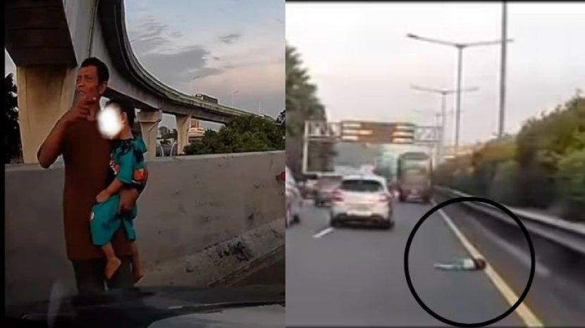 Rekaman dashcam dari mobil di belakang menunjukkan momen saat anak itu jatuh. Beruntung, pengemudi mobil segera berhenti dan menolong korban, lalu mengembalikannya ke bus yang berhenti di KM 14 A.