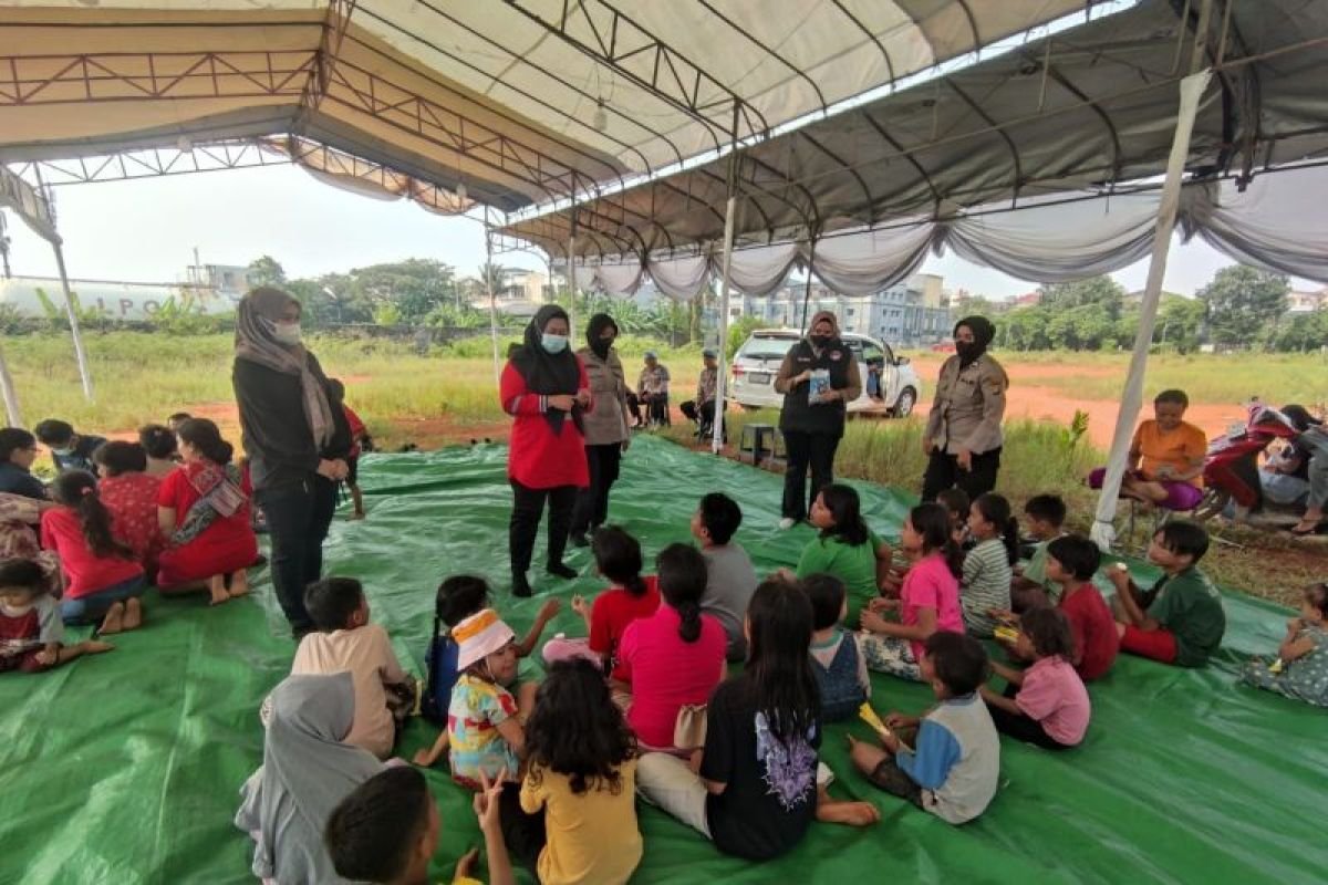 Polwan Ajak Anak-anak Bernyanyi dan Bermain